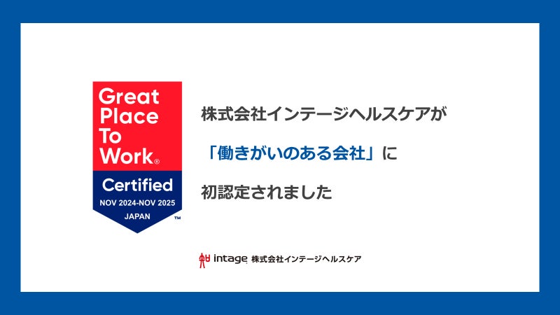 株式会社インテージヘルスケア(本社:東京都千代田区、代表取締役社長:村井啓太)は、Great Place to Work® Institute Japan (以下、GPTW Japan) が実施する「働きがいのある会社」認定において、初めて「働きがい認定企業」として認定されました。