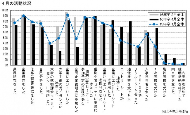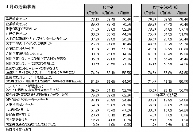 「2016年卒マイナビ学生就職モニター調査 4月の活動状況」を発表