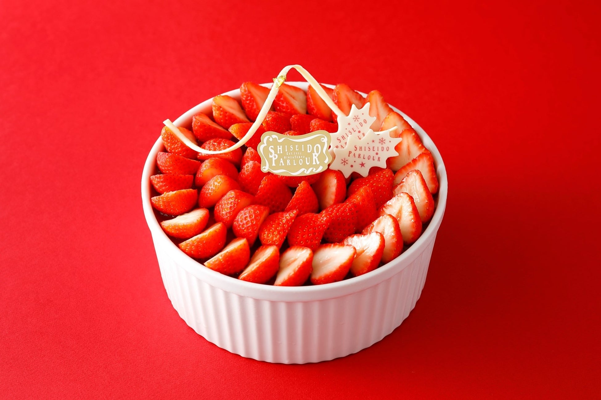 資生堂パーラー自慢のふんわりとした軽い口どけの真っ白な生クリームに真っ赤な苺をふんだんに盛り付け、チョコレートでツリーのようにデコレーションしたショートケーキです。