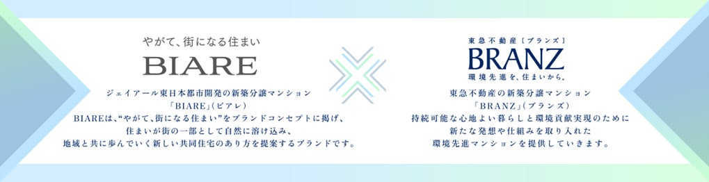 「BIARE」は、“やがて、街になる住まい”をブランドコンセプトに掲げ、住まいが街の一部として自然に溶け込み、地域と共に歩んでいく新しい共同住宅のあり方を提案するジェイアール東日本都市開発のあたらしい分譲マンションブランドです。ブランドサイト:https://jrtk.jp/biare/