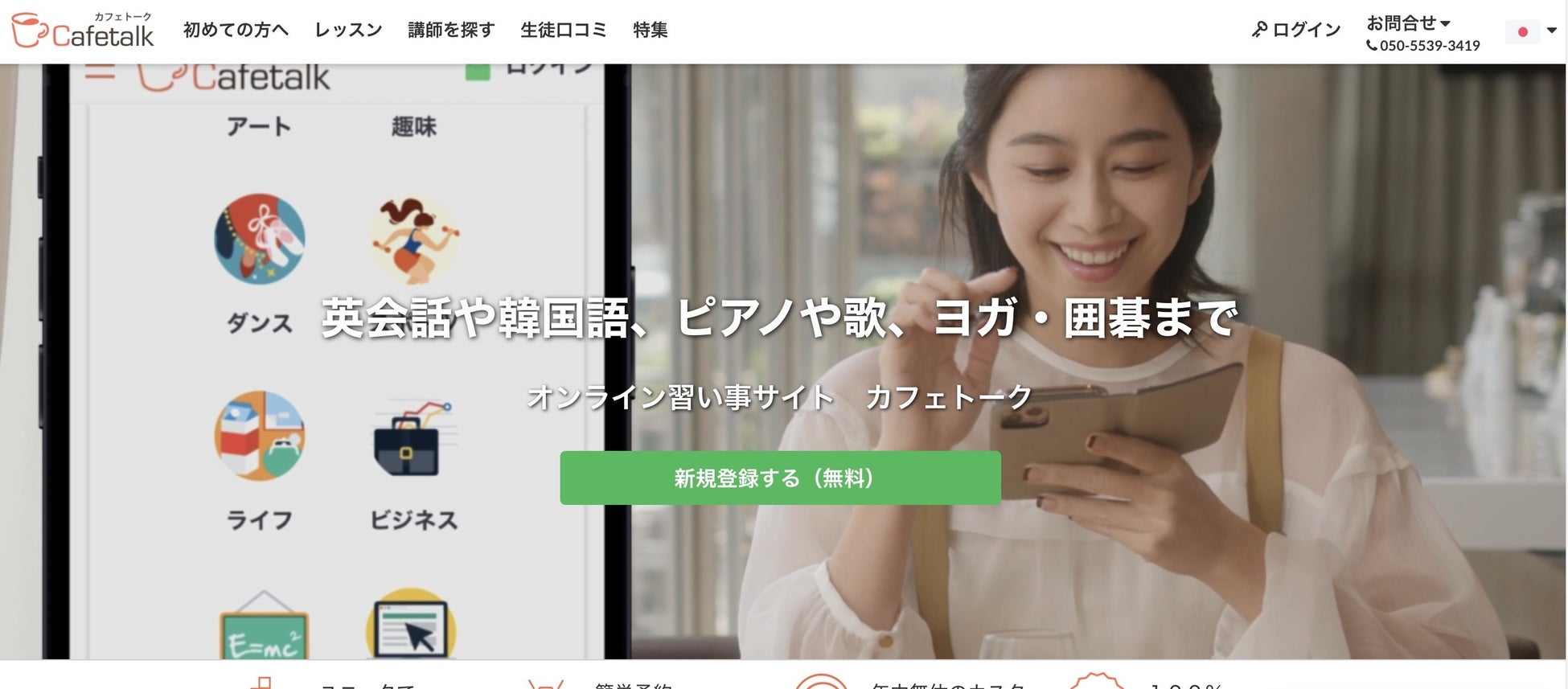 カフェトークのオンラインレッスン一覧:https://cafetalk.com/lessons/?lang=ja