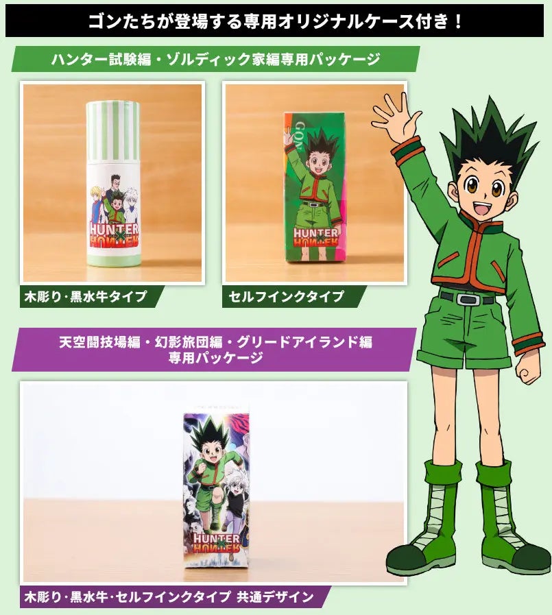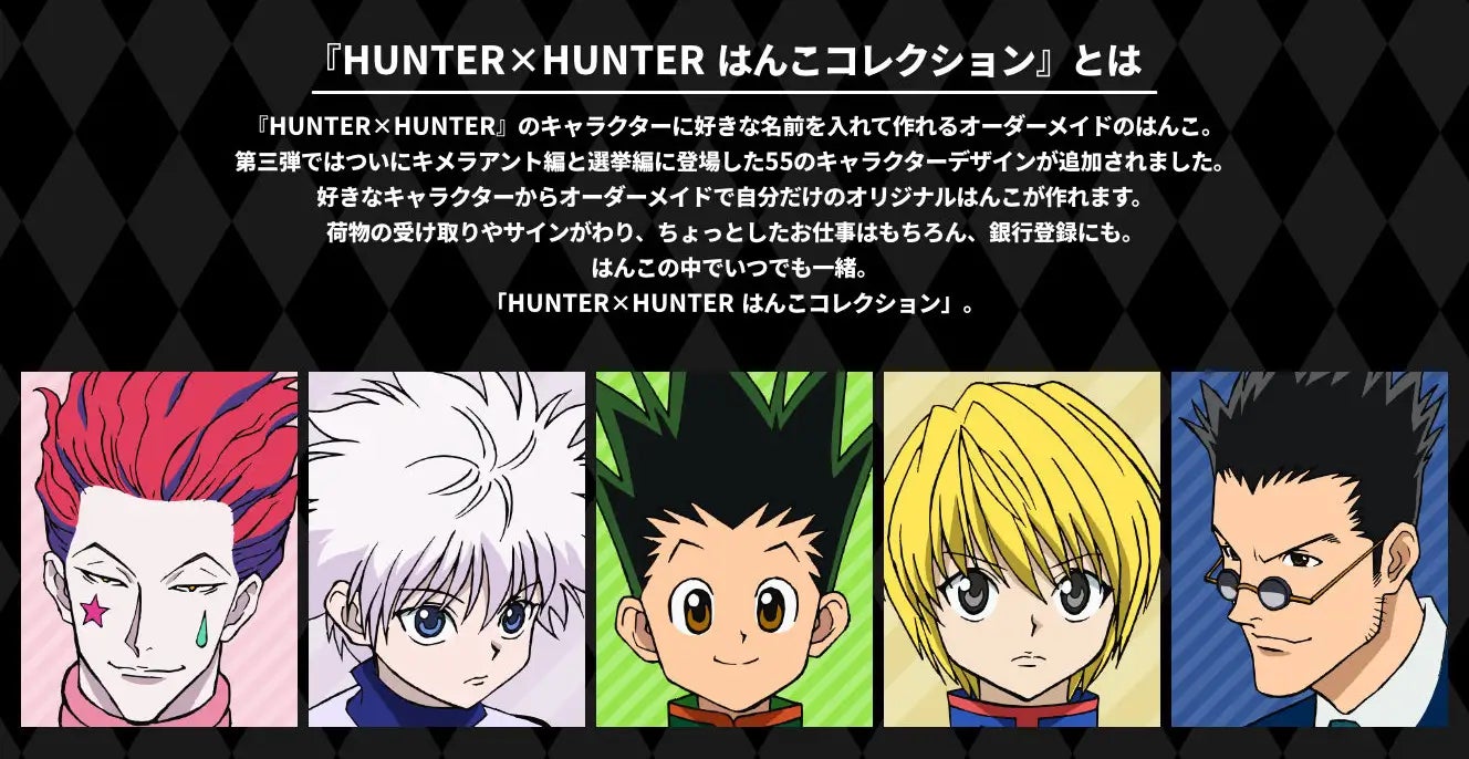 「HUNTER×HUNTER はんこコレクション」は、TVアニメ「HUNTER×HUNTER」に登場するキャラクターに、好きな名前を入れて作れるオーダーメイドのはんことなります。