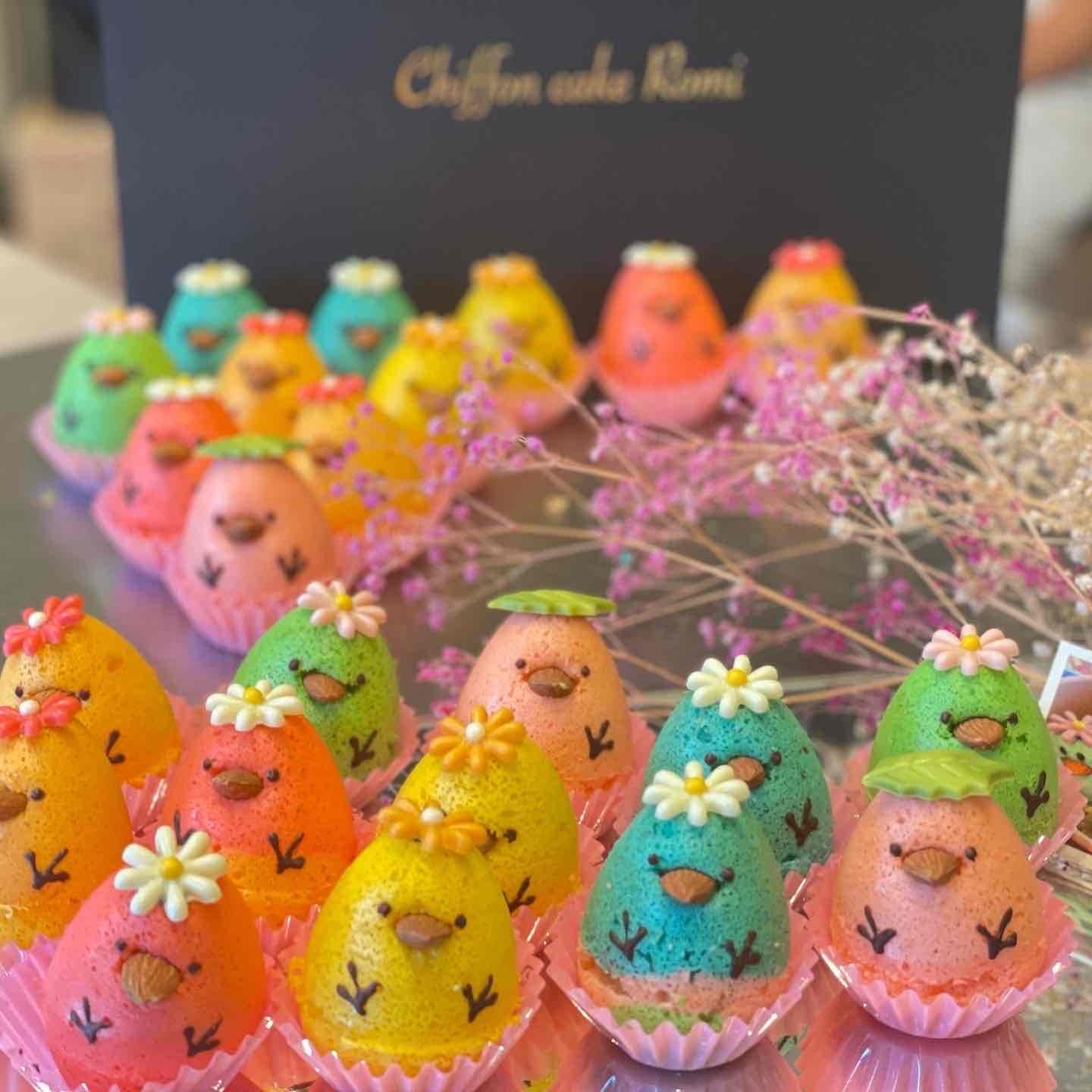千葉県のいすみ市から直送のたまごをたっぷり使用した生地は、しっとりと濃厚な味わいと軽やかな口当たりが特長です。シフォンケーキは一つ一つ丁寧に焼き上げています。「ぴよちゃん」は、味がたくさんあり、ぴよちゃんのお顔も一つ一つ個性に溢れているのが特長です。どれもパティシエの手作業によって生み出されています。どの子にしようか迷ってしまうほどの可愛さのぴよちゃんにぜひ会いに来てください。