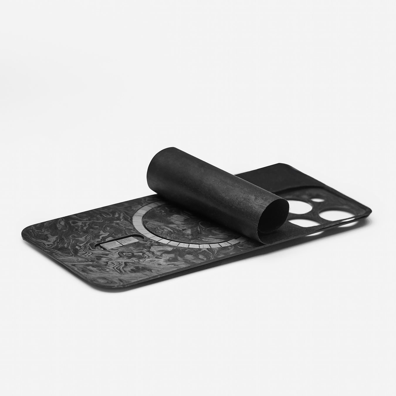 また、フォージドカーボンを使用したケースは極めて薄く作られており、圧倒的な軽さを誇ります。フォルム、質感、軽さ、装着のしやすさ、全てにおいて革新的なiPhoneケースとなっています。