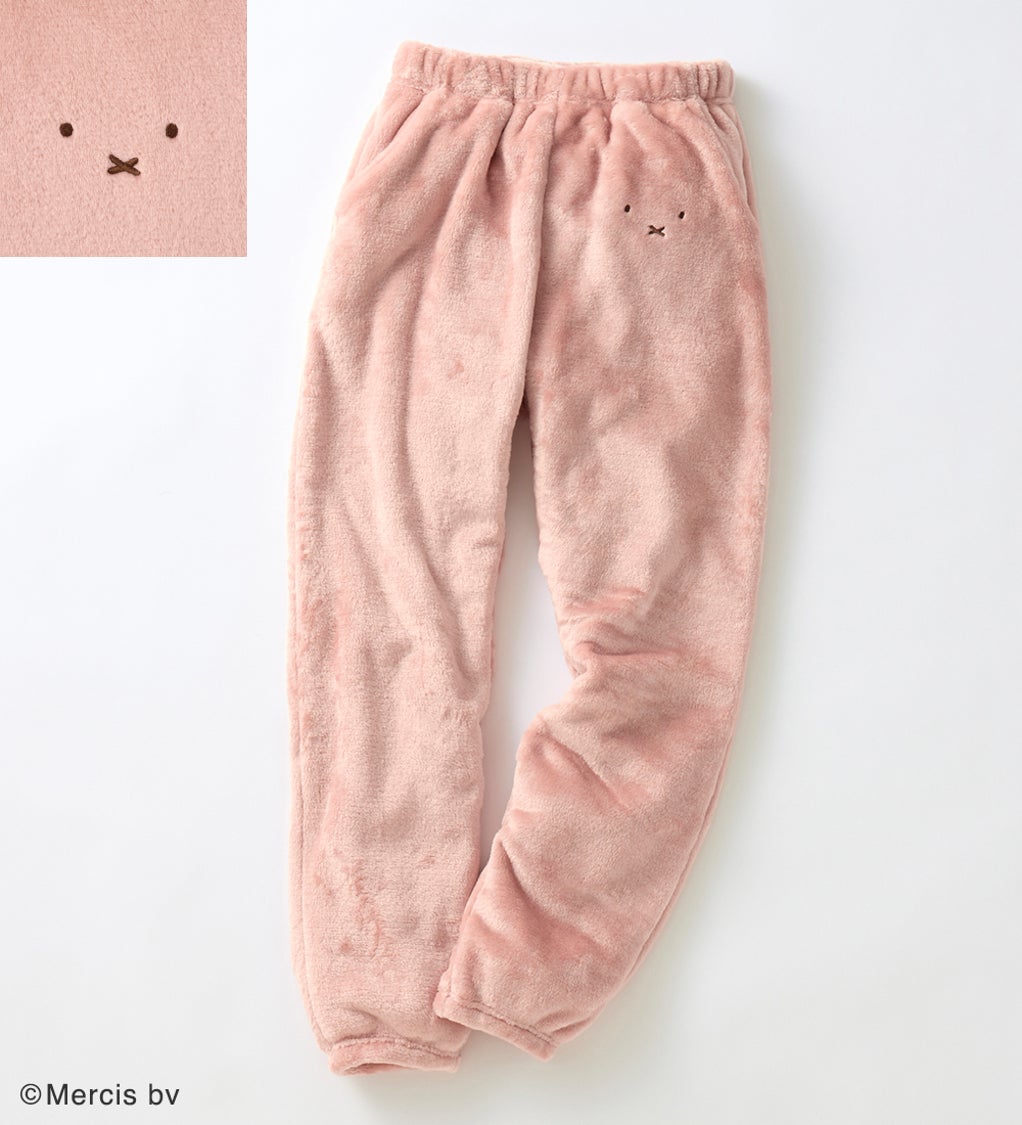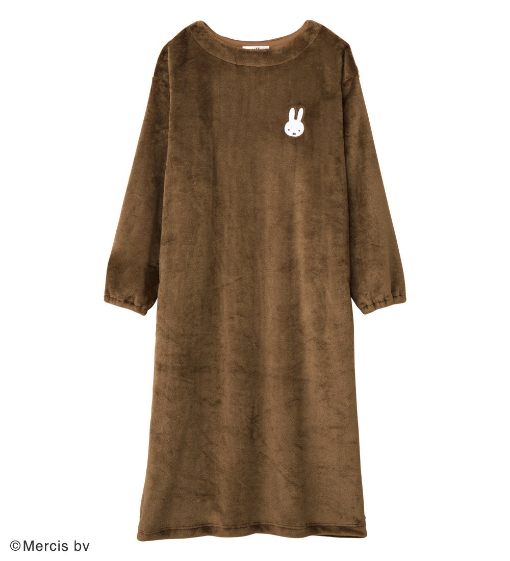 ふわふわもこもこの素材に、ミッフィーを刺繡したかわいらしいルームウエア。胸元についたミッフィーの顔がワンポイントです。