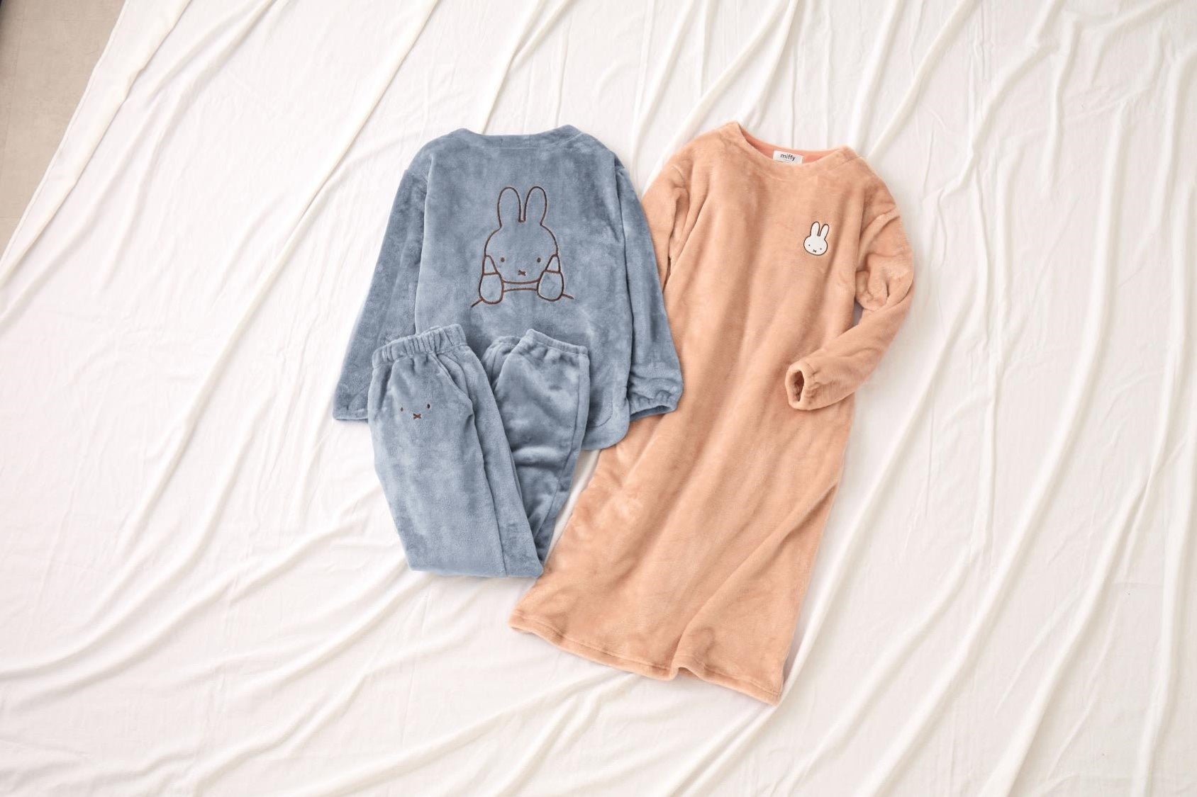 今回ご紹介するのは、ミッフィーの刺しゅうが入った、かわいらしい2種類のルームウエア。どちらもふわふわもこもこのやさしい肌ざわりの素材で、これからの寒い季節にぴったりのアイテムです。立ち耳うさぎの日である11月11日(月)よりベルーナオンラインストアで販売を予定しております。心も体も癒されるミッフィーとのコラボアイテムをぜひこの機会にチェックしてみてください。