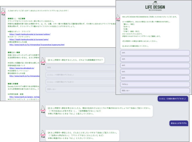 移住希望者に簡単な質問を行い、その方に合った伊那市でのライフプランを提案します。