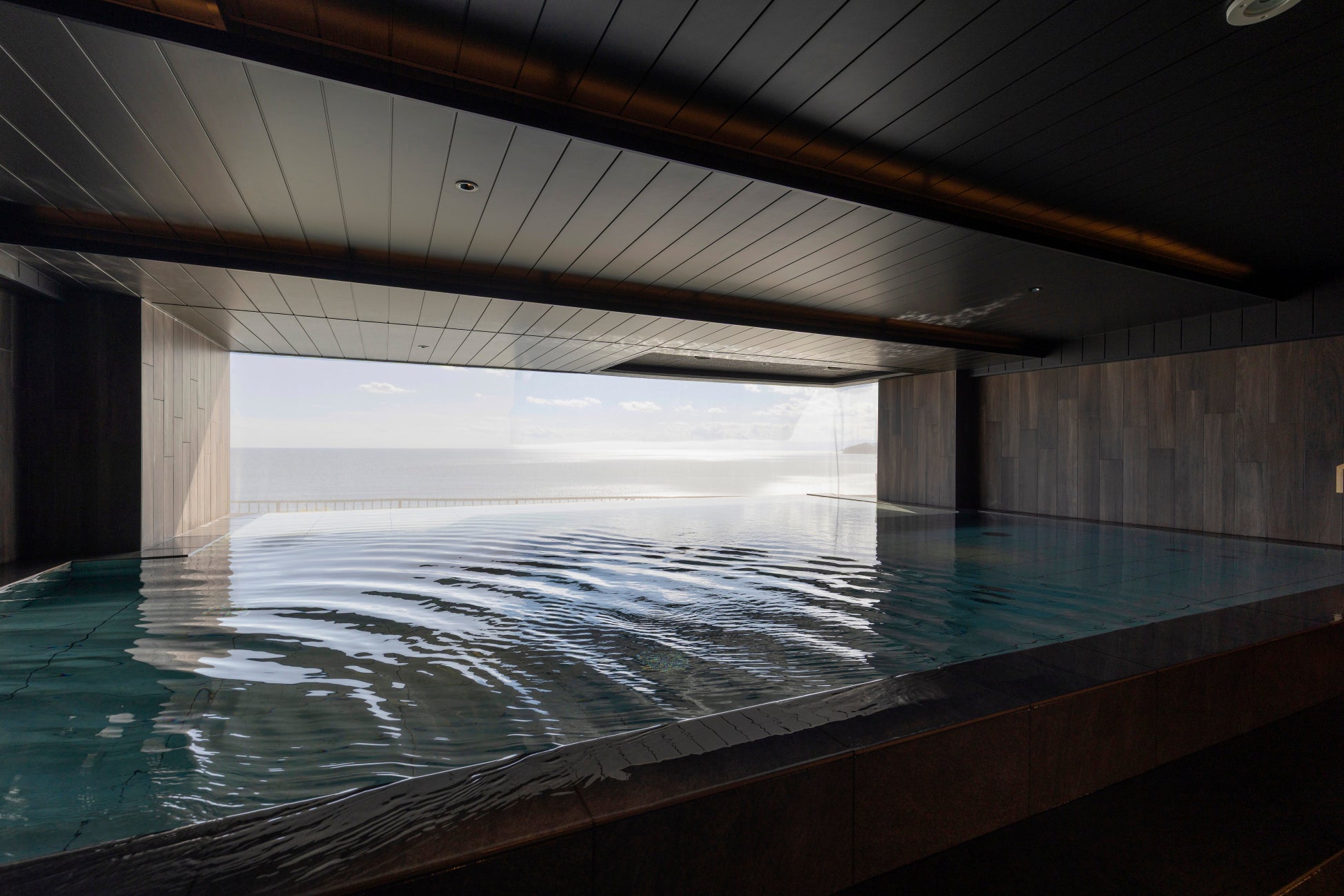 インフィニティ温泉からは、日本の夕陽百選に選ばれた志摩市浜島町の黄金色に染まる海の絶景をお楽しみいただけます。湯船に体を沈めると、まるで雄大な太平洋にそのままとけ込んでいくかのような、一体感を味わうことができます。落ち着きのある空間で、海を眺めながらゆったりと湯あみをご堪能ください。