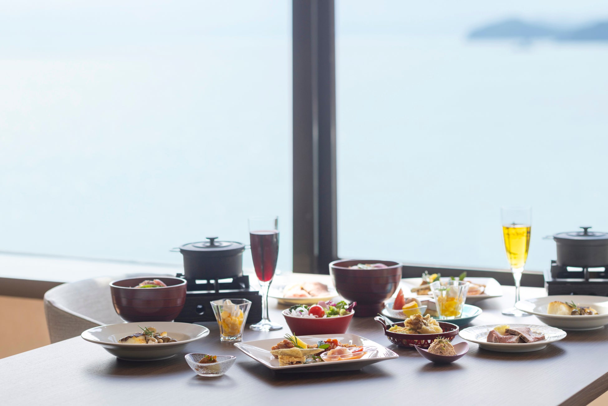イタリアの田舎町をイメージした、温かくほっと一息つけるような雰囲気のレストランでは、伊勢志摩の食材を使用した地中海グルメをお楽しみいただけます。地中海風のパエリアや南イタリアの郷土料理で、濃厚でありながらさわやかな後味が特徴の地中海風レモンクリームパスタ、地中海野菜のトマトソースでいただく三重県産豚のシュニッツェルなど、華やかなお料理をご用意しております。また「オールインクルーシブ」を採用しているので、夕食時のアルコールはすべて飲み放題。三重県のお酒もご用意しております。「ゆったりと、たおやかに。」旅先ならではの優雅で贅沢なお食事を満喫ください。