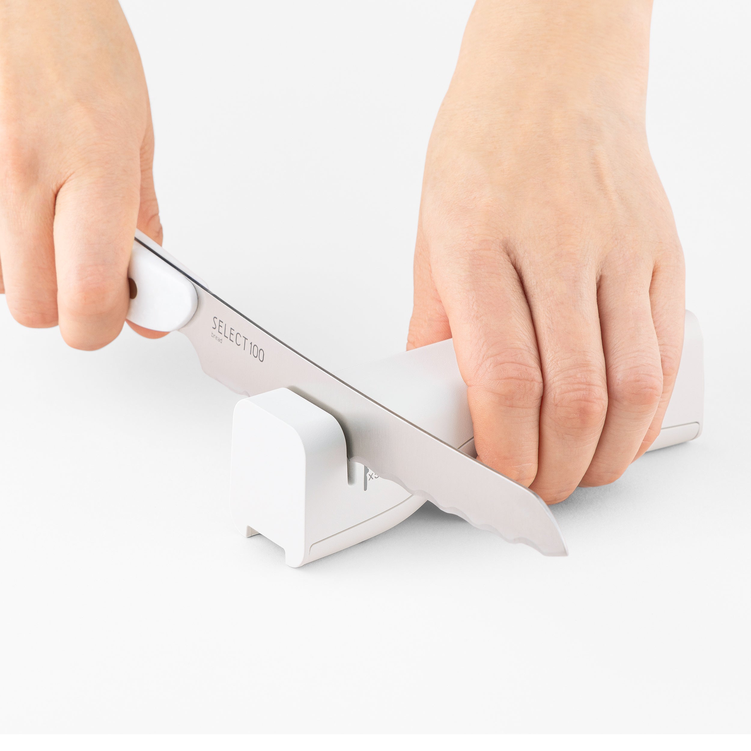 切れ味が悪いと感じたときにさっと研げる 世界初※1パン切り用と両刃用の包丁を一台で研げて握りやすい!「SELECT100 シャープナー」が新登場