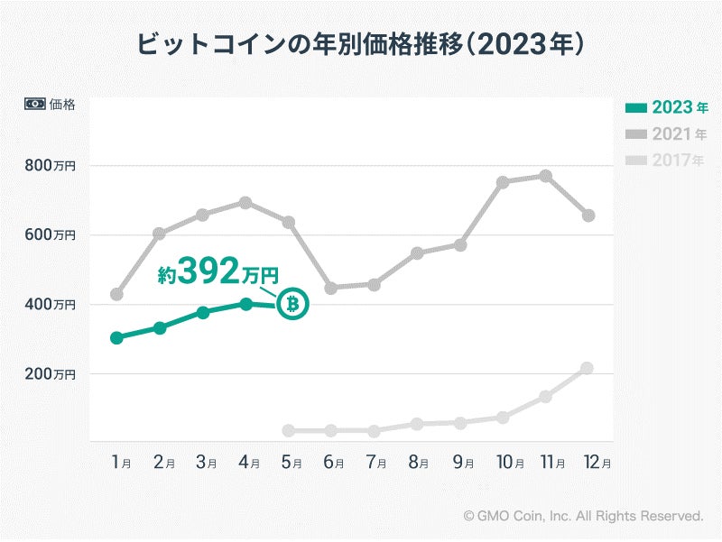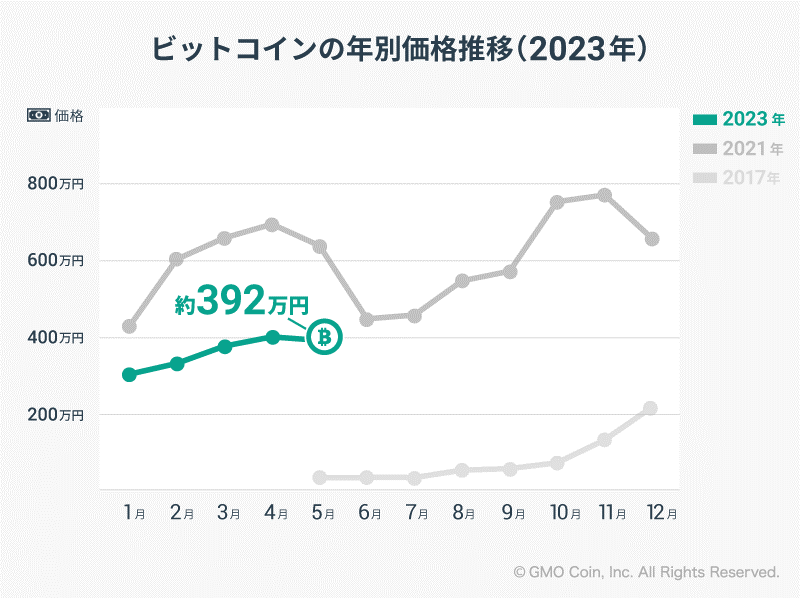 GMOコインは、サービス提供を開始した2017年から現在まで、ビットコイン(BTC)の価格がどのように推移しているのか調査いたしました。(※1)今回の調査は、ビットコイン(BTC)が2023年に入り上昇傾向にある中で、長期的な動向を改めて確認し、今後のお取引の参考にしていただくために実施いたしました。