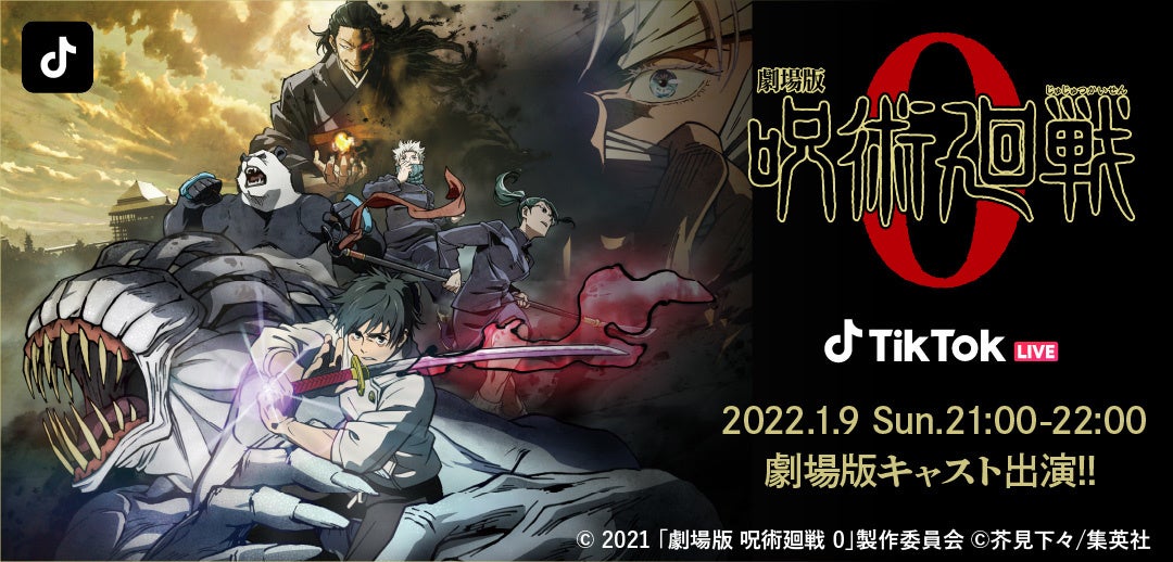 ショートムービープラットフォーム「TikTok(ティックトック)」は、1月9日(日)に『劇場版 呪術廻戦 0』の豪華声優陣をゲストに迎えたTikTok LIVE配信を開催いたします。