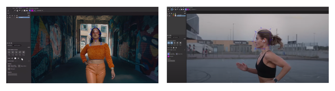 AIにより2D映像の奥行きを自動解析し深度マップを作成します。これにより、映像の背景だけにボカシ効果や色補正をかけたり、複数の映像を合成したりする作業が圧倒的に効率的になります。 | AIが映像をフレームごとに分析し、移動しているオブジェクトを識別・追跡することで自動的にベジェマスクを生成します。もちろん不正確だった場合は手動で調整できます。 これからは手動でマスキングする必要はありません。合成にかかる時間を大幅に節約できます。 |