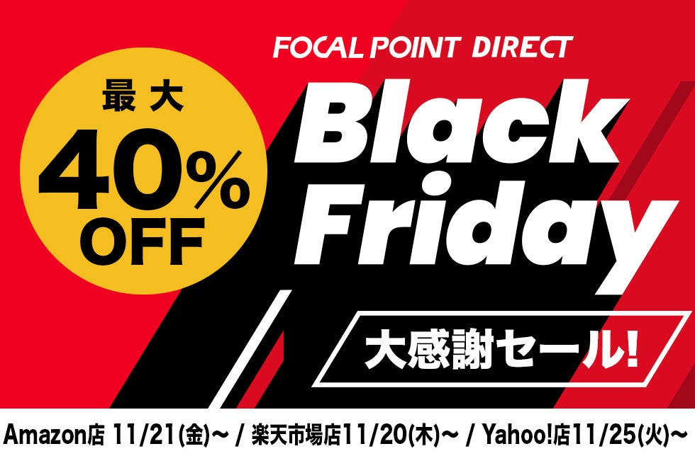 フォーカルポイント株式会社(本社:東京都港区、代表取締役 恩田英樹 以下フォーカルポイント)は、直営オンラインショップ フォーカルポイント・ダイレクトAmazon店、楽天市場店、Yahoo!ショッピング店にて最大40%OFFのBlack Friday大感謝セール!を開催いたします。