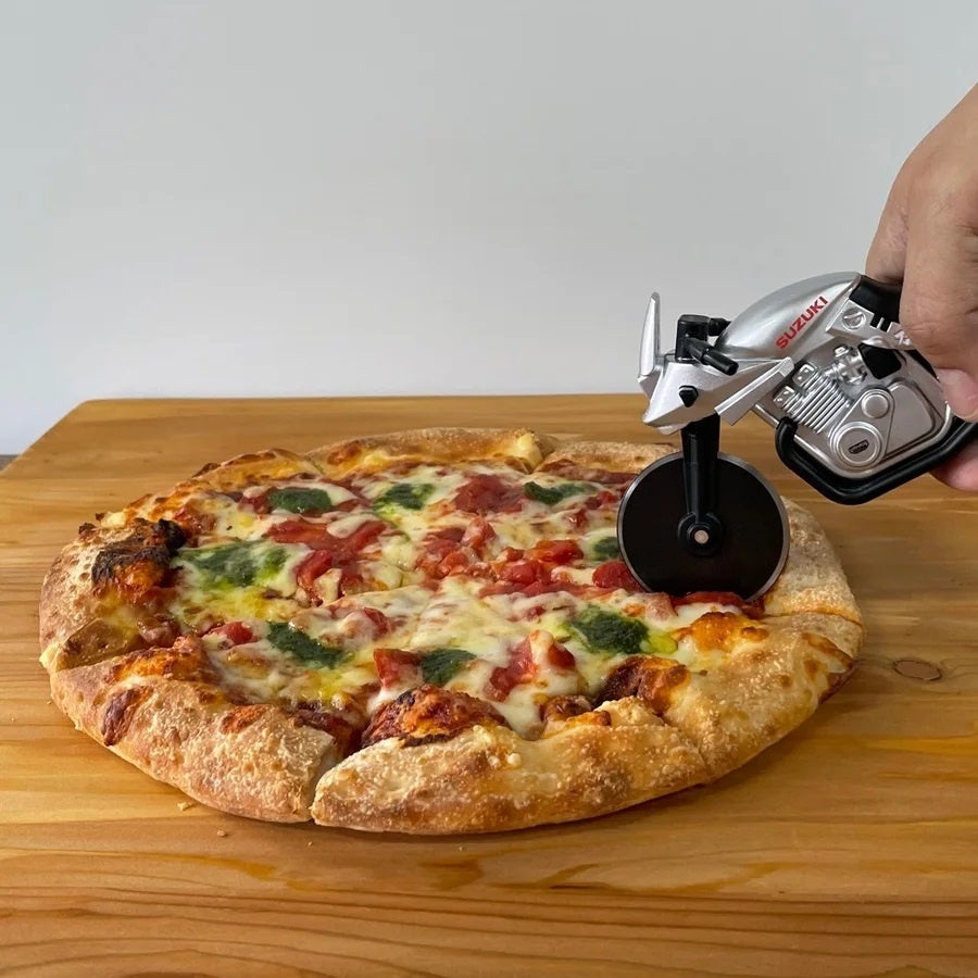 スズキのスポーツバイク GSX1100S KATANA をモチーフに作られた「PIZZA カッターナ」はピザを鋭い切れ味でカットするためのピザカッターです。