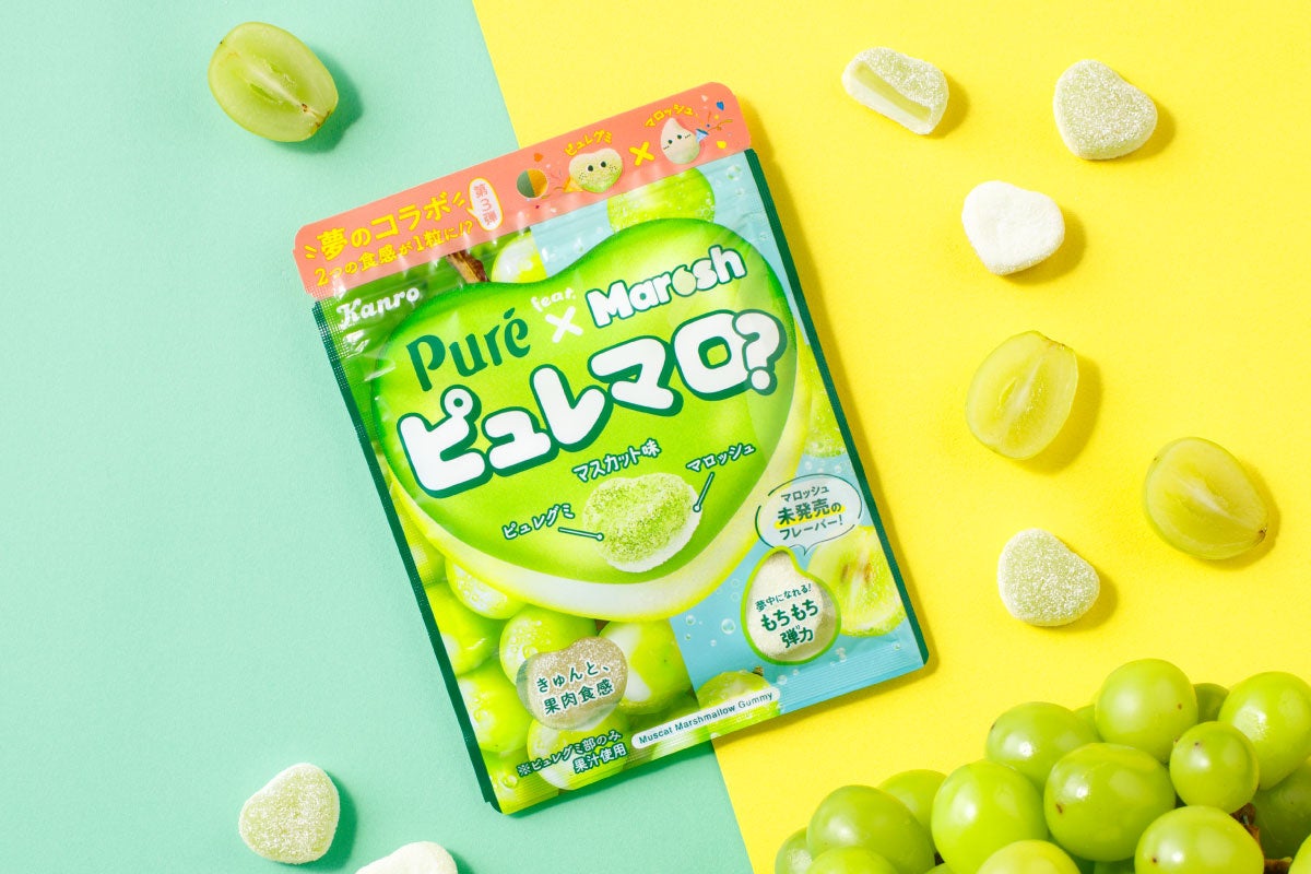 ピュレグミの「果肉食感」×マロッシュの「もちもち弾力食感」がひと粒に カンロ 「ピュレマロ?マスカット」 新発売