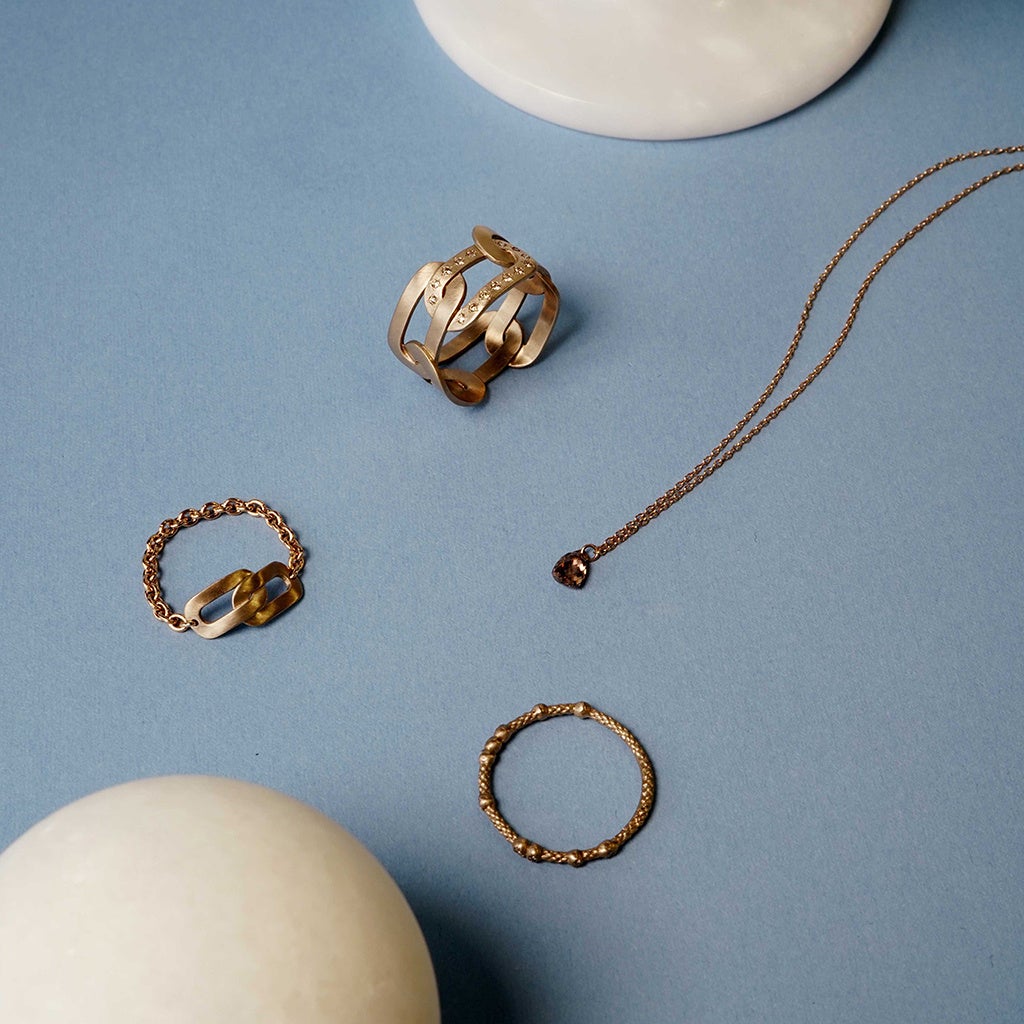 遊び心あふれるデザインが魅力の〈talkative〉ジュエリー。1つ身に付けるだけで、スタイルに圧倒的な存在感を。