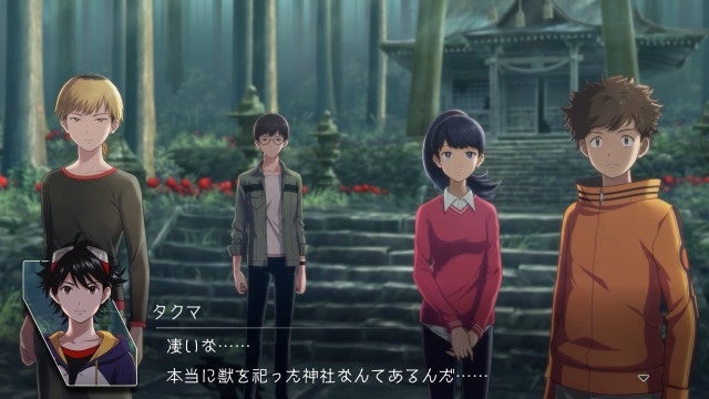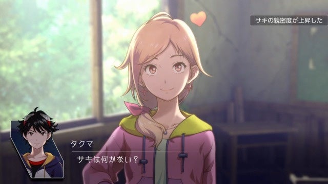 物語はテキストアドベンチャーで進行し、キャラクター達との会話や、色々な場所を調べることでゲームが進行していきます。会話や調査の途中で「選択肢」が出現することがあり、「選択肢」で選んだ行動の積み重ねで、物語が分岐し、パートナーであるアグモンの進化先が変化していきます。