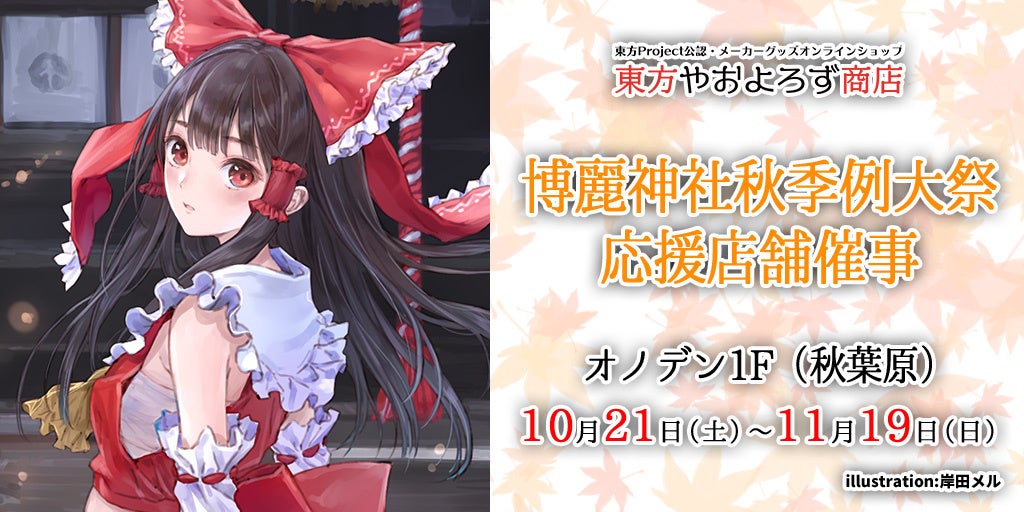 11/12(日)第十回博麗神社秋季例大祭へ「東方やおよろず商店」ブース出展決定!秋季例大祭に先駆けて10/21(土)~オノデン1Fにて応援店舗催事も開催【東方やおよろず商店】