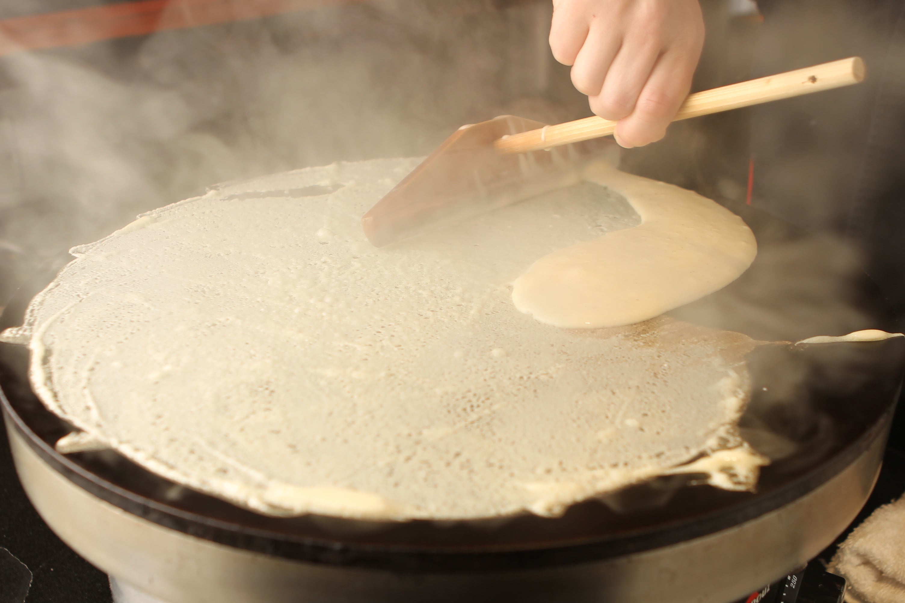 | クレープの日「シャンデレール(Chandeleur)」とは フランスでは、2月2日の「シャンデレール」と呼ばれる日にクレープを家族や友人たちと食べる習慣があります。シャンデレールは聖燭祭とも言い、イエス・キリストが生後40日目に聖母マリアとともに神殿を訪れた日を祝う行事です。 なぜクレープを食べることになったのかは諸説ありますが、太陽のように黄色く真ん丸いクレープは、寒く厳しい冬の終わりを告げる象徴となったとも言われており、近年では 「シャンデレール」は春の訪れを祝う日として親しまれています。 また、フランスの家庭ではこの日、クレープを焼く際、左手にコインを握りながら、右手でフライパンのクレープを高くあげてひっくり返すことで、その年の運勢を占います。うまく返すことができれば、幸運に恵まれた1年になると言われています。 |