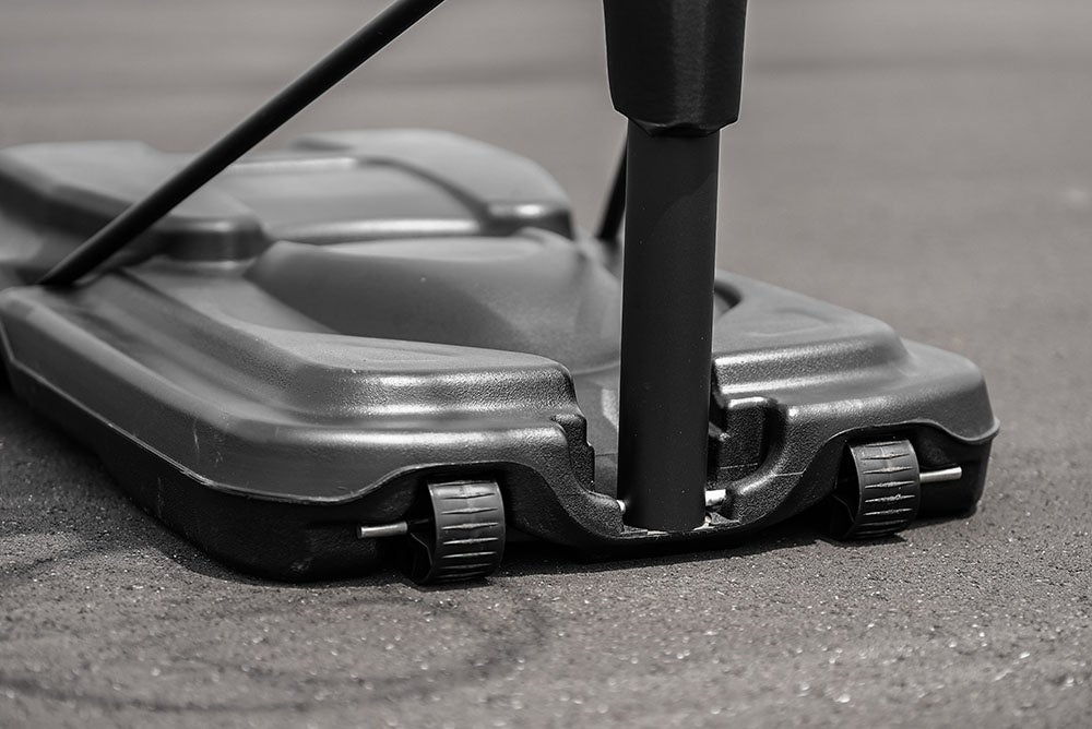ベースタンクの位置をゴールより後ろに設計しているため、レイアップシュート時などに足元を気にせずにプレイすることが可能です。ベースタンクに足を引っかけることなく安全にお使いいただけます。また衝撃を吸収してくれるポールパッドも付属しているためお子様から大人まで安心安全に使用していただけます。