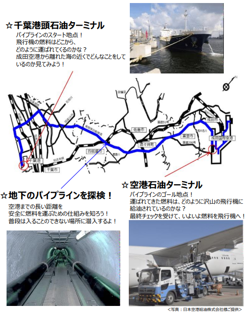 その第一弾として、今般特別に、パイプライン沿線市町在住の小学生を対象として、給油施設を航空燃料の流れに沿って巡る見学会を開催します。