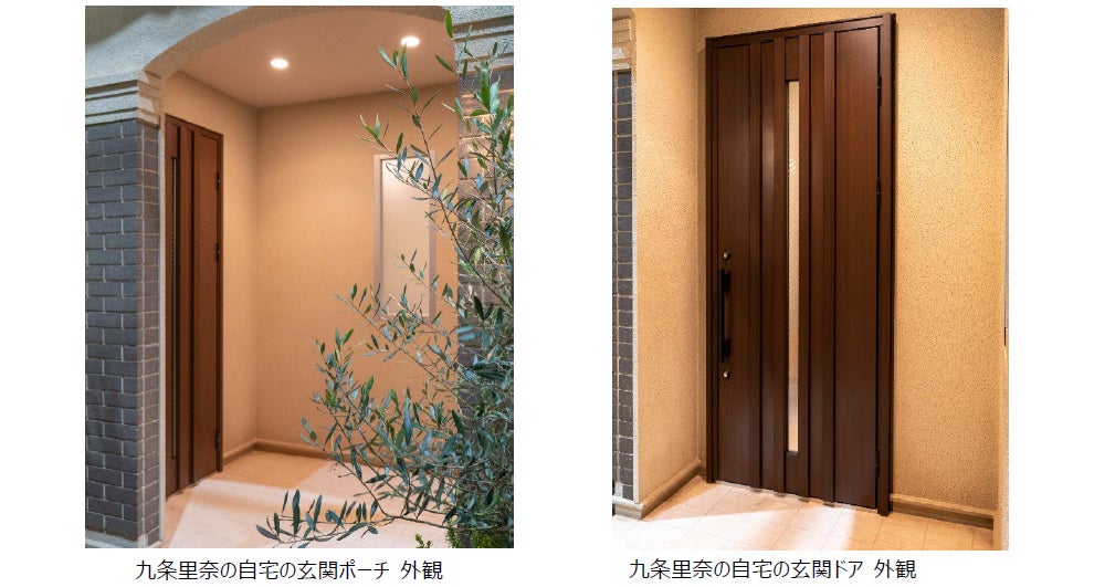 ドラマの主人公、高校教師・九条里奈の自宅の玄関ドアに、断熱玄関ドア「ヴェナート D30 防火ドア」を採用いただきました。人気の縦スリット採光デザインの木調玄関ドアがアースカラーで仕上げられた玄関ポーチの壁の色あいにマッチし、落ち着いた空間を演出しています。