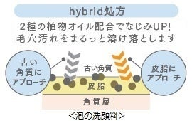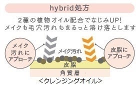 メイクや毛穴汚れを早くしっかり落とせる「hybrid処方」