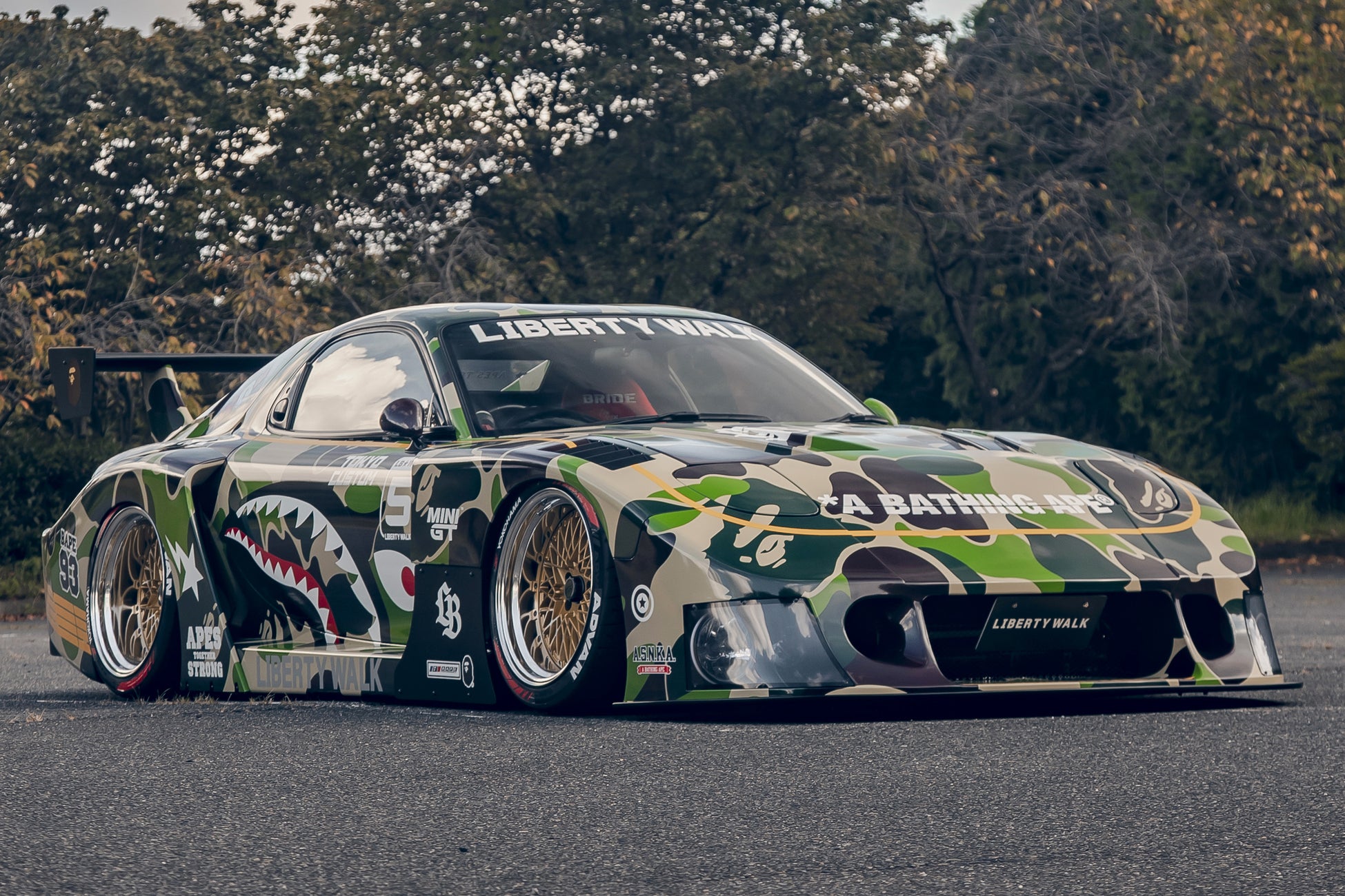 「A BATHING APE®︎(ア ベイシング エイプ®以下、BAPE®︎)」は、愛知県を拠点にする世界的カスタムカーショップ「LIBERTY WALK(リバティウォーク以下、LBWK)」とタッグを組み、スーパーカーをカスタムしました。さらに、コラボレーションを記念したアイテムも同時発売します。