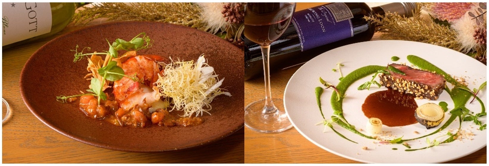 2023年のクリスマスは、オマール海老や国産牛ロースなど豪華食材を使用した贅沢なコースをご用意いたしました。肉料理と魚料理のダブルメインディッシュをお楽しみいただけます。