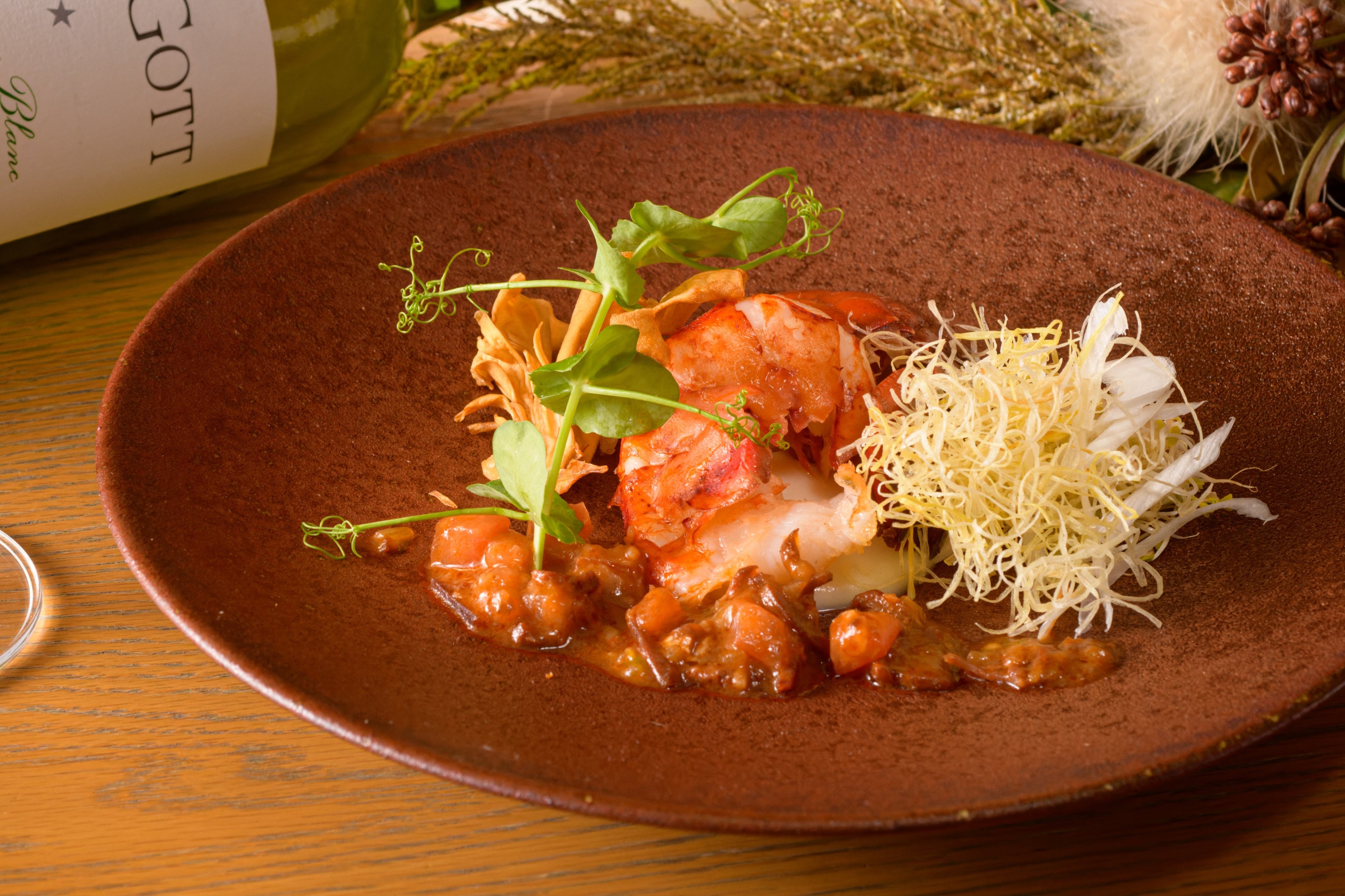 ・オマール海老のポワレ 白舞茸 冬葱 シェリービネガーのソース