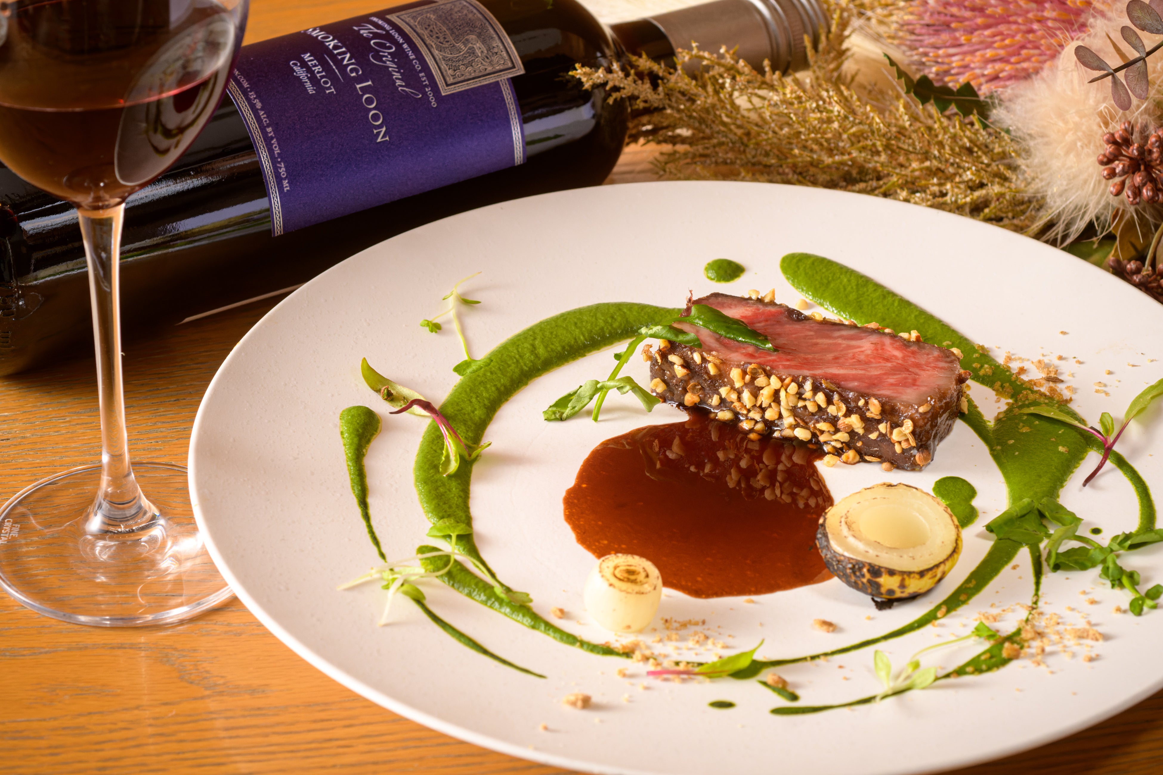 ・国産牛ロースグリル デュカスパイスのグレイズ 冬の緑野菜のクーリ