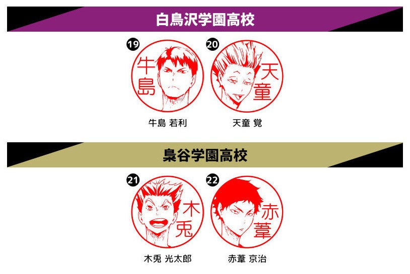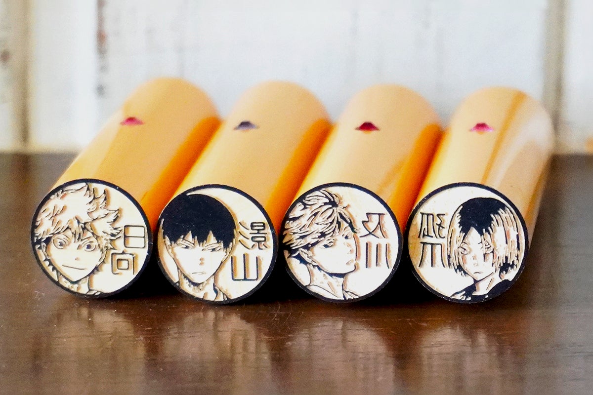 「アニメ『ハイキュー!!』はんこコレクション」は、アニメ「ハイキュー!!」第1期~第3期に登場するキャラクターに、好きな名前を入れて作れるオーダーメイドのはんこ。