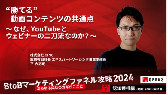 \10月8日(火)開催/ “あらゆる成功のカギがここに” B to Bマーケティングファネル攻略、Day1「認知獲得における動画/YouTube活用編」をテーマとしたイベントを開催