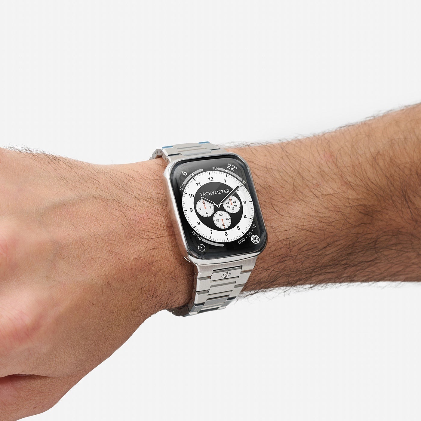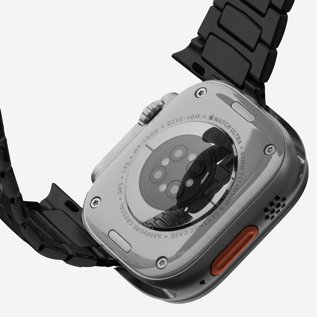カラーバリエーションはスタイリッシュな色味で統一されており、チタニウムグレー、ブラック、シルバーの3色展開となっています。また、ストラップは全てアップルウォッチ45mm、49mm共に使用可能となっており、多彩なスタイルオプションを提供いたします。
