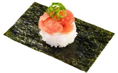 「本鮪中落ち包み」一貫110円(税込)※店内飲食限定