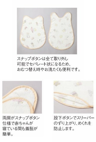 起毛部分にコットンを使用したやさしい肌ざわりのスリーパー