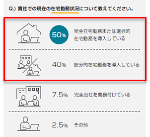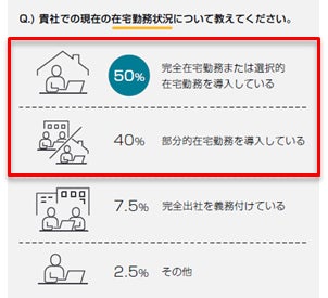※2:「完全在宅勤務または選択的在宅勤務を導入している」と「部分的在宅勤務を導入している」を回答した企業の合計