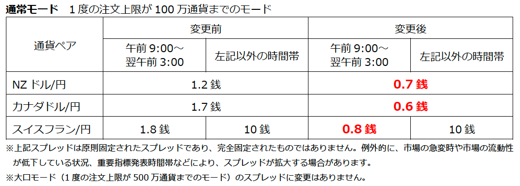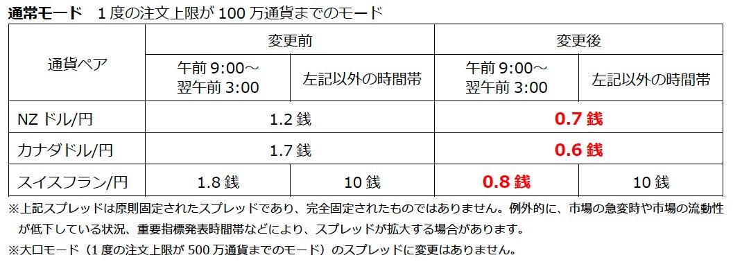 ~NZドル/円、カナダドル/円、スイスフラン/円のスプレッドを縮小~