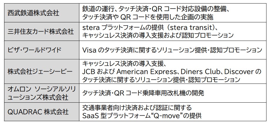西武鉄道株式会社(本社:埼玉県所沢市、代表取締役社長:小川 周一郎)、三井住友カード株式会社(本社:東京都江東区、代表取締役社長:大西 幸彦)、ビザ・ワールドワイド・ジャパン株式会社(本社:東京都千代田区、代表取締役社長:シータン・キトニー)、株式会社ジェーシービー(本社:東京都港区、代表取締役兼執行役員社長:二重 孝好)、オムロン ソーシアルソリューションズ株式会社(本社:東京都港区 代表取締役社長:四方 克弘)、QUADRAC株式会社(本社:東京都港区、代表取締役社長:高田 昌幸)は、多様化するライフスタイルやニーズへ対応すべく、タッチ決済対応のカード(クレジット、デビット、プリペイド)や、同カードが設定されたスマートフォン等を活用した乗車サービス(以下、「タッチ決済乗車」)の実証実験を、2024年12月16日(月)より西武鉄道のターミナル駅、観光地周辺の21駅にて開始することを発表します。