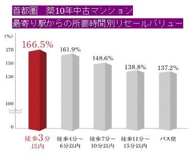 駅から近いマンションほど面積も小さく流通量も限られるため、希少価値が高い傾向にあります。駅徒歩3分以内の物件のリセール時の価格は、購入時の金額と比較して約66%上昇するというデータがあり、リセール時の価格維持にも期待できます。