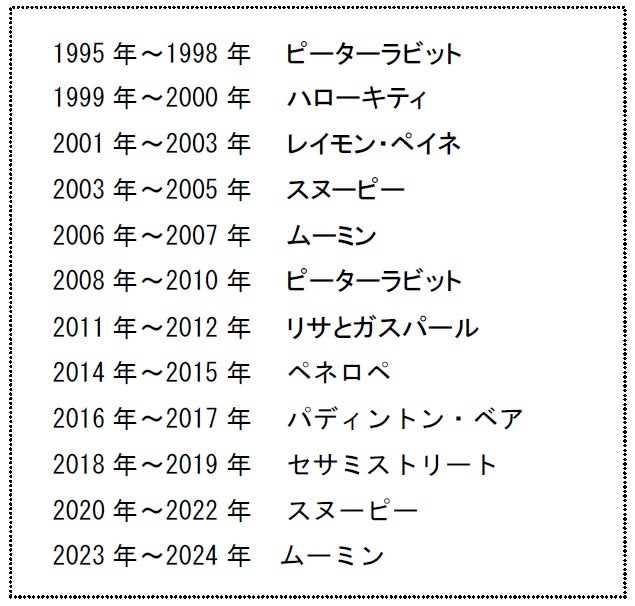 多くの人に親しまれているキャラクターを採用しています。デザインは2~3年ごとに変わります。