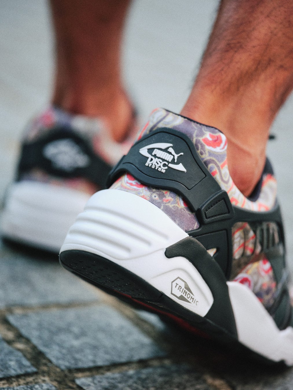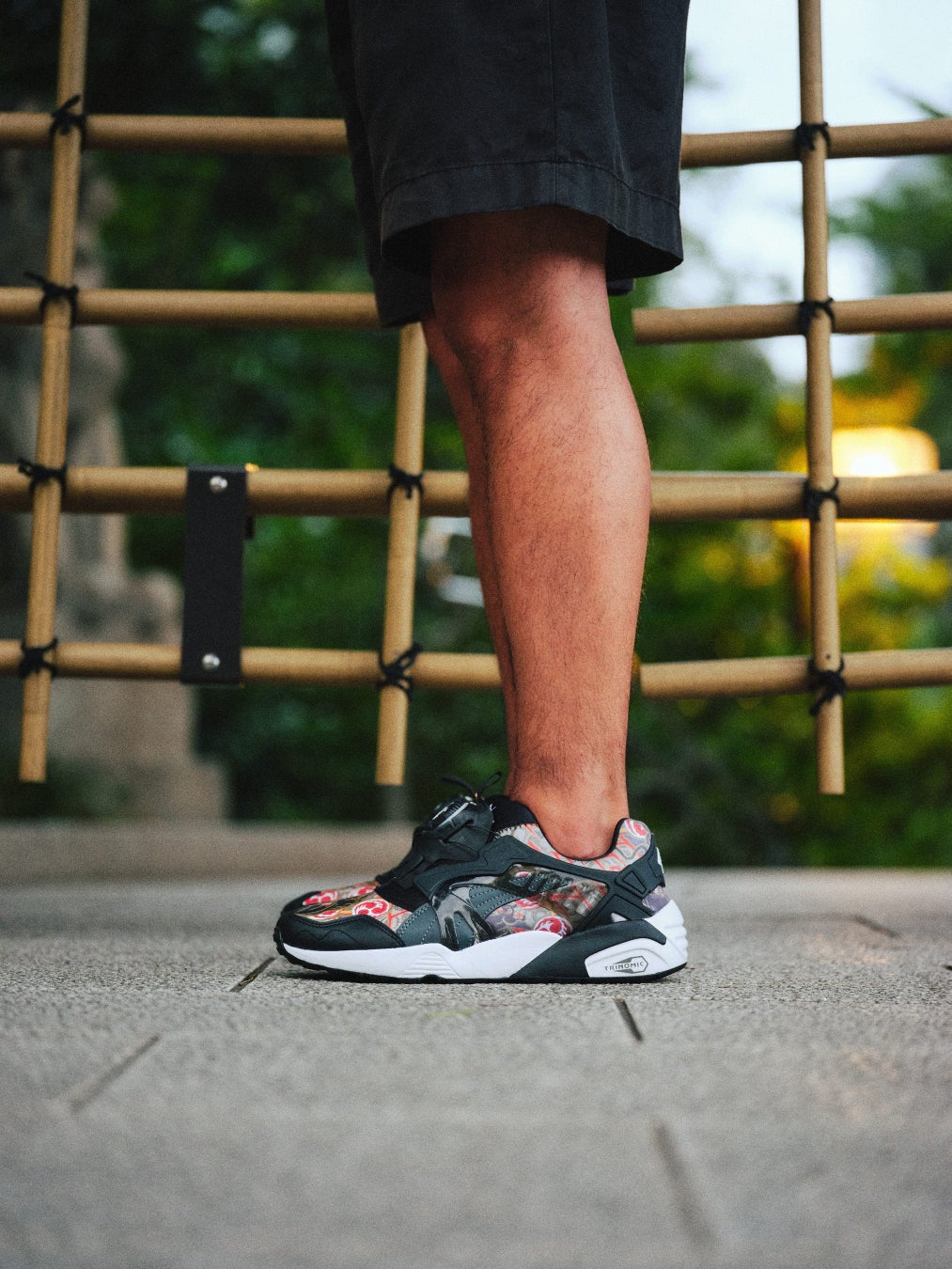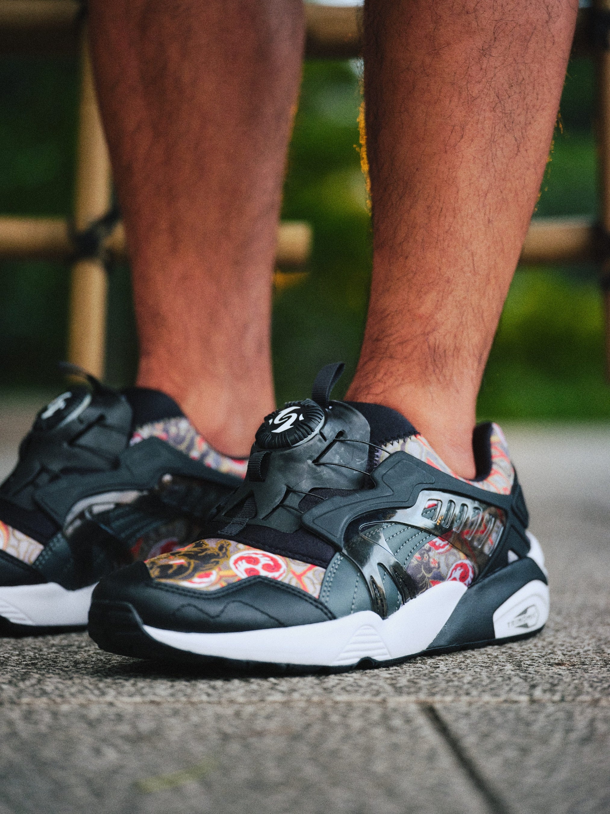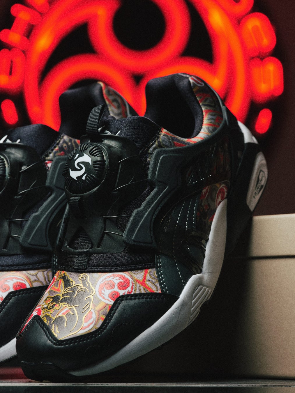 「PUMA」のDISK BLAZEを浮世絵で大胆にアレンジしたTHREE TIDES TATTOO、atmosによるトリプルコラボレーションモデルが登場。