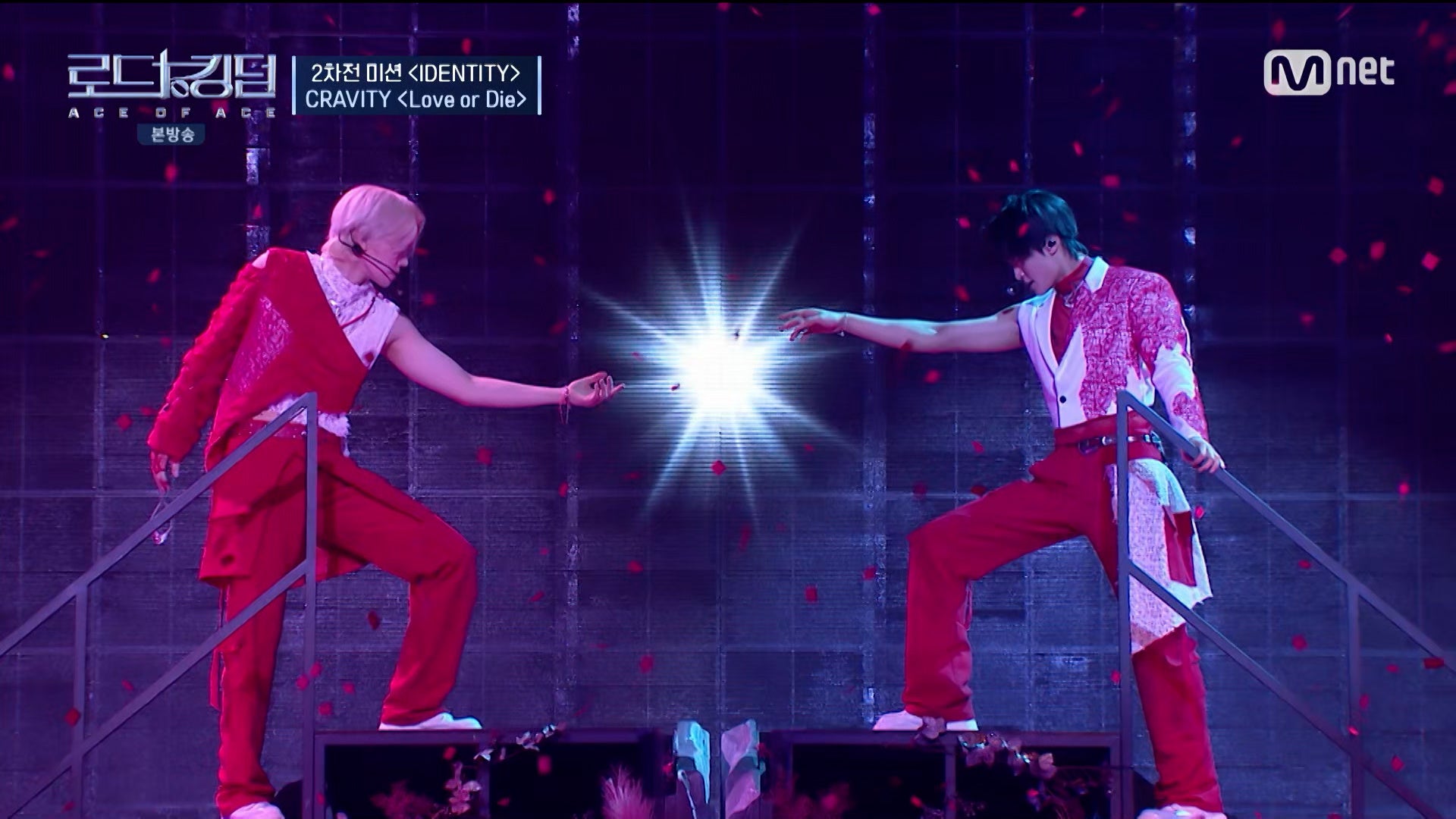 CRAVITYは、地上波音楽放送初の1位を獲得した『Love or Die』を選曲。THE NEW SIXと同じタイトルではあるものの異なる楽曲を選び真っ向勝負に挑みます。評価戦最下位から第1戦チームランキング1位に躍進したCRAVITYは、1位の座を守るための勝負を繰り広げました。エースのテヨンとミニが絶壁から落ちる劇的な演出で、冒頭から注目を集め、さらに光を見つけ出す首尾一貫したステージで、一瞬たりとも目が離せないパフォーマンスを披露しました。これには相手チームも「コンセプト、編曲、振り付けがすべて合っていた」、「また上位圏になりそうだ」と惜しみなく賞賛の言葉を送りました。