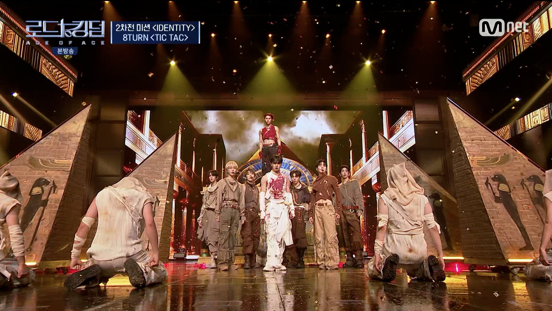 そんな中、第1戦で最下位を記録し、脱落の岐路に立たされることになった8TURNは、敗北の要因を分析し、華麗な小道具を積極的に活用して視聴者の注目を集めます。エースのジェユンとミョンホはデビュー曲『TIC TAC』に死の神と死んだ王というコンセプトを与え、壮大なスケールのステージを披露しました。話数を重ねるごとに成長する8TURNの姿に相手チームは「このステージで基準値があまりにも高くなった」、「確実なエースとコンセプトがある舞台だった。 成長した」と惜しみない称賛を送りました。