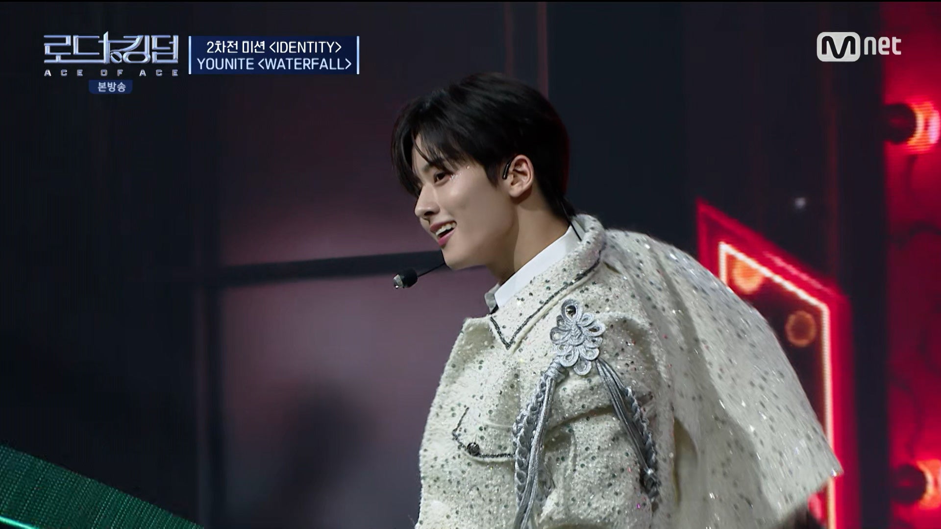 第1戦で強烈な印象を残したYOUNITEは、今回ミュージカルを連想させる軽快な舞台で清涼な魅力を表現。 「みんなで楽しめる曲」とし『WATERFALL』を選曲し、エースのウンサン·ウノを中心にミュージカル的な要素とフェスティバルを連想させるステージを繰り広げます。童話のような舞台を見た相手チームは「空気清浄機のような舞台」、「競演でもこのような舞台を見せることができるんだ」、「ウノの顔がとてもハンサムでファンになった」と感嘆した様子で語りました。