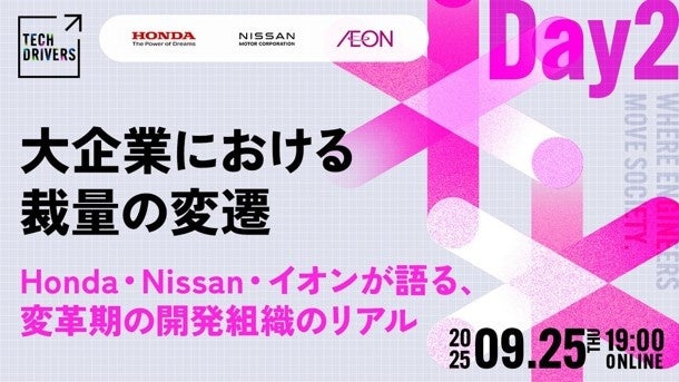 「TECH DRIVERS Day2」では、Honda・Nissan・イオンの3社から、開発現場をリードするキーパーソンが登壇し、現場の裁量や判断のあり方、文化の育み方について、実体験を基に解説します。