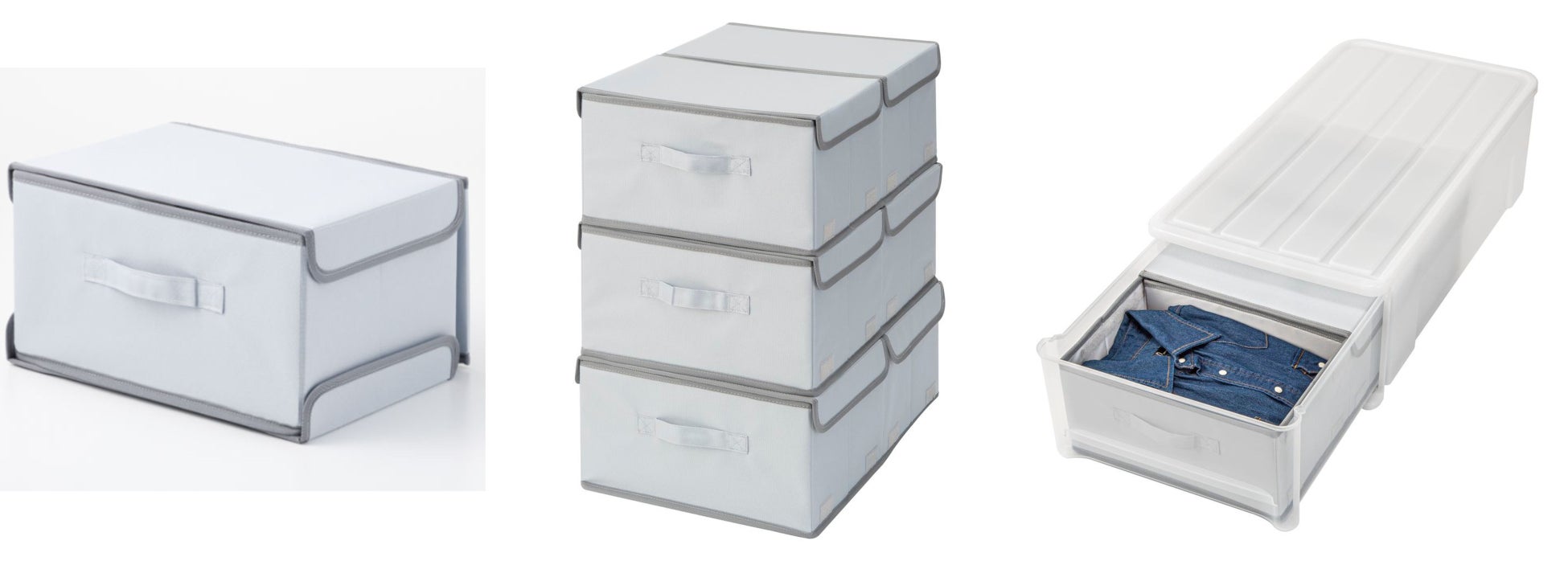 【ニトリ】広げて、重ねて、畳んで、自由自在!収納ケースに入れて衣類の仕分けもできる伸縮ボックスを新発売。