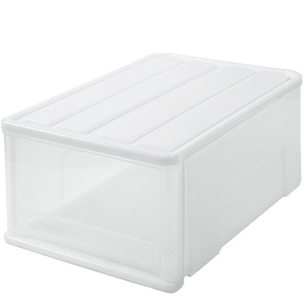 フタ付きなので収納ボックスとして衣類もしっかり保護。積み重ねて使用することも可能です。