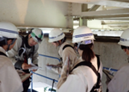 本学科では、社会インフラを担う人材育成(社会インフラを支える技術への理解と重要性を深めること)を目的として、現場での学びを重視した教育活動を行っています。今回の橋梁点検学習会では、学生が実際に橋梁点検の最前線を体験し橋梁点検技術やメンテナンスの重要性を学びました。